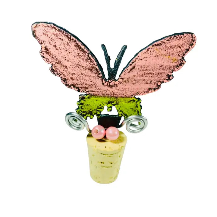 Wine Topper with metal image, wire and beads with cork. Metal is rustic and recycled. Made in the USA.
