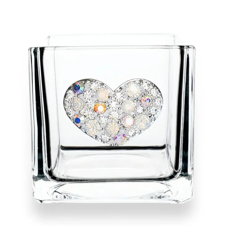 MULTI STONED HEART JEWELED 4X4 CANDLE HOLDER